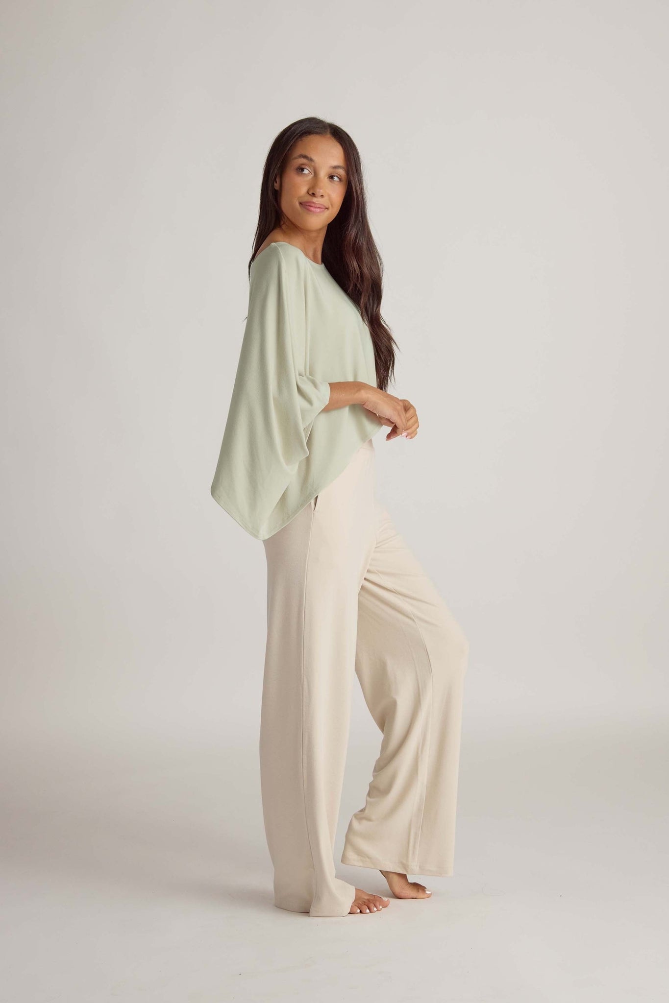 A versatile layering piece designed to be worn alone or over your favorite tank. Our Söft Shrug Shirt features a loose, flowy silhouette with a flattering drape that feels effortlessly elegant. Perfect for lounging at home, traveling, or stepping out in style; it combines the cozy comfort of loungewear with a polished finish.