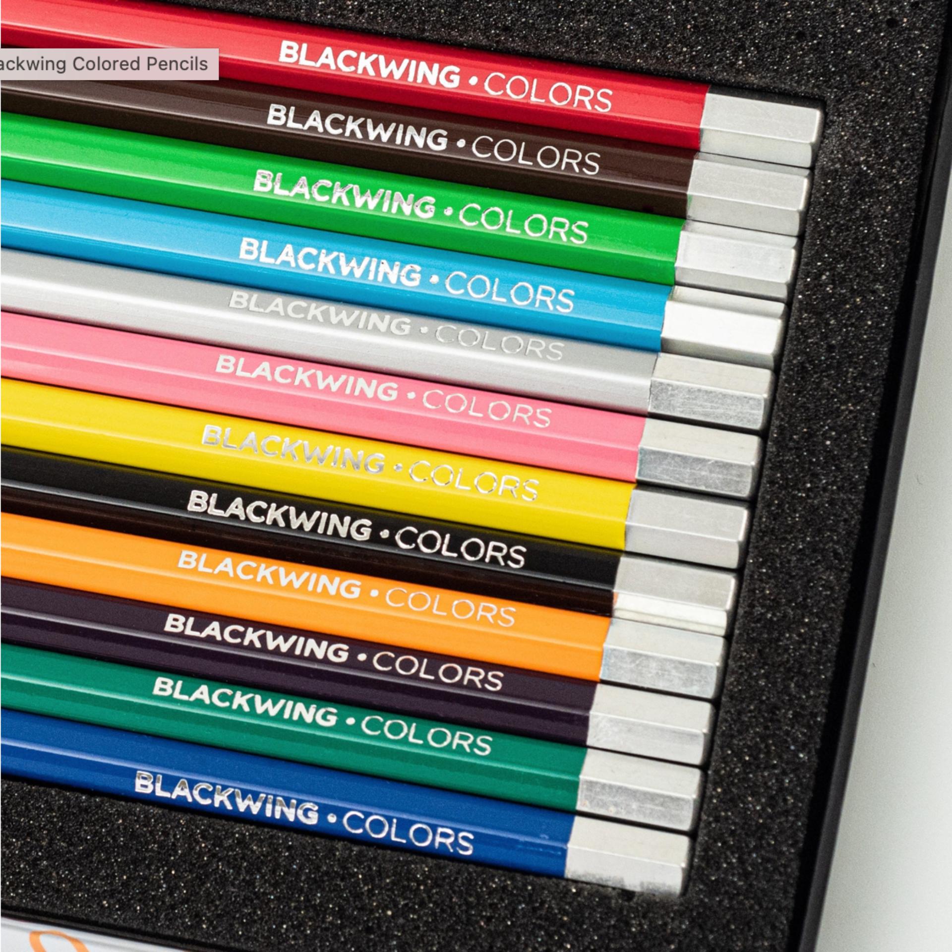 Blackwing Colors were designed specifically for coloring. Each pencil is made with Genuine Incense-cedar and includes a unique soft and smooth Japanese wax color core. Each pencil features the same semi-hexagonal barrel and iconic ferrule found in our graphite pencils. The design also features a special sand eraser with a semi-abrasive texture made specifically to erase colored pencils.