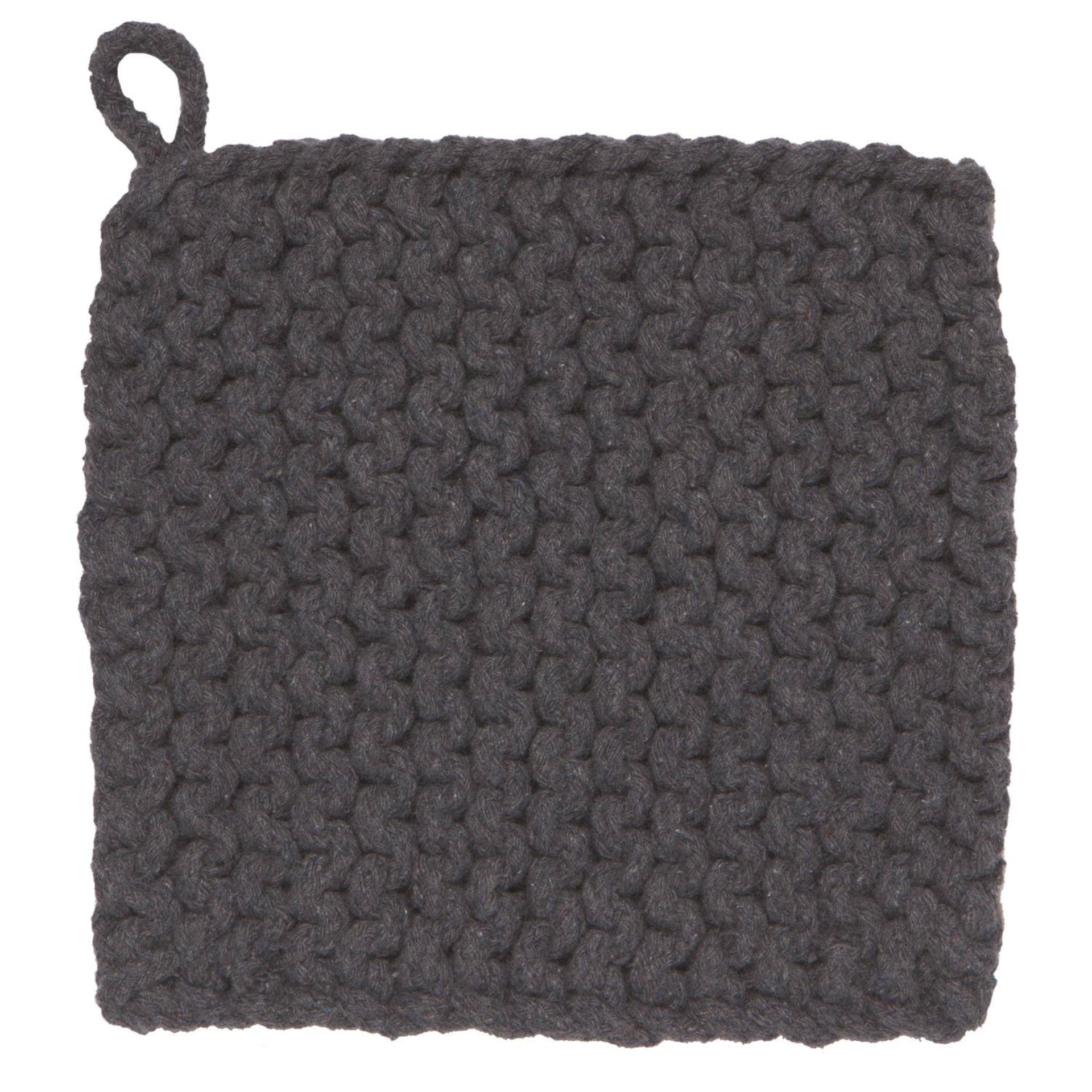 A chunky knit potholder made from 100% cotton protects hands from hot objects. Set one on the table for the perfect teapot trivet. A hanging loop makes for easy storage.