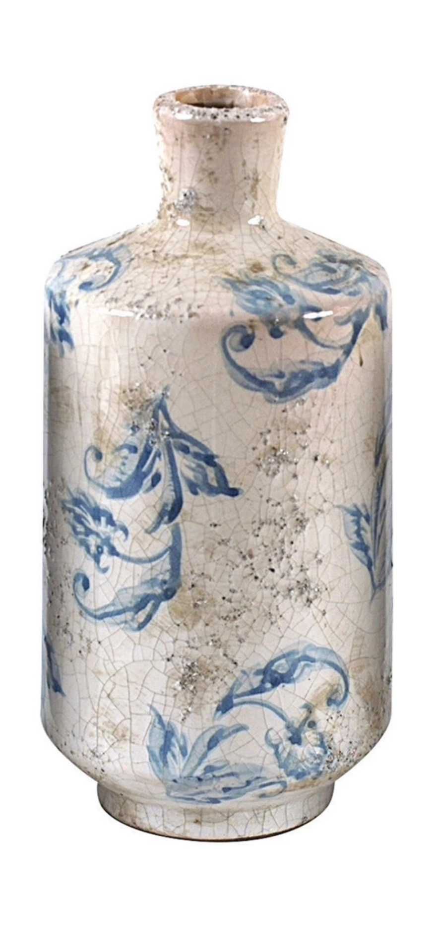 Terra-cotta Vase w/ Transferware Pattern, Blue & White, 3 Styles