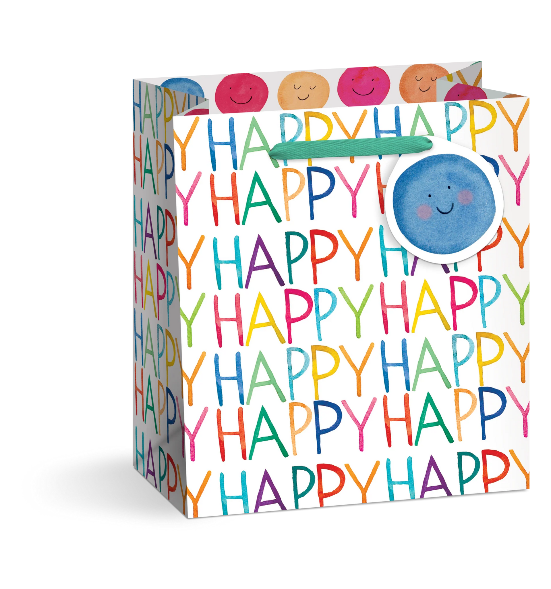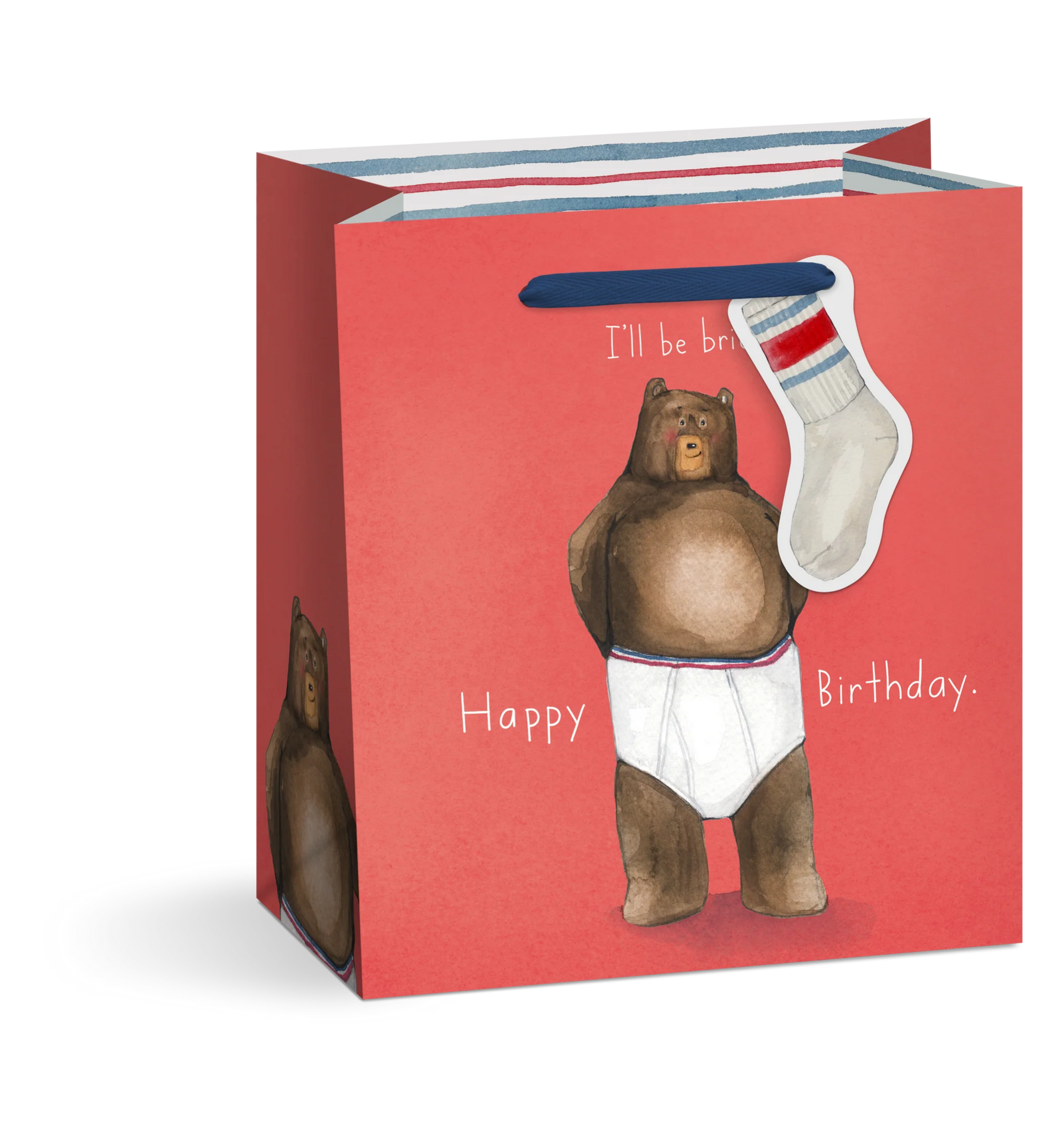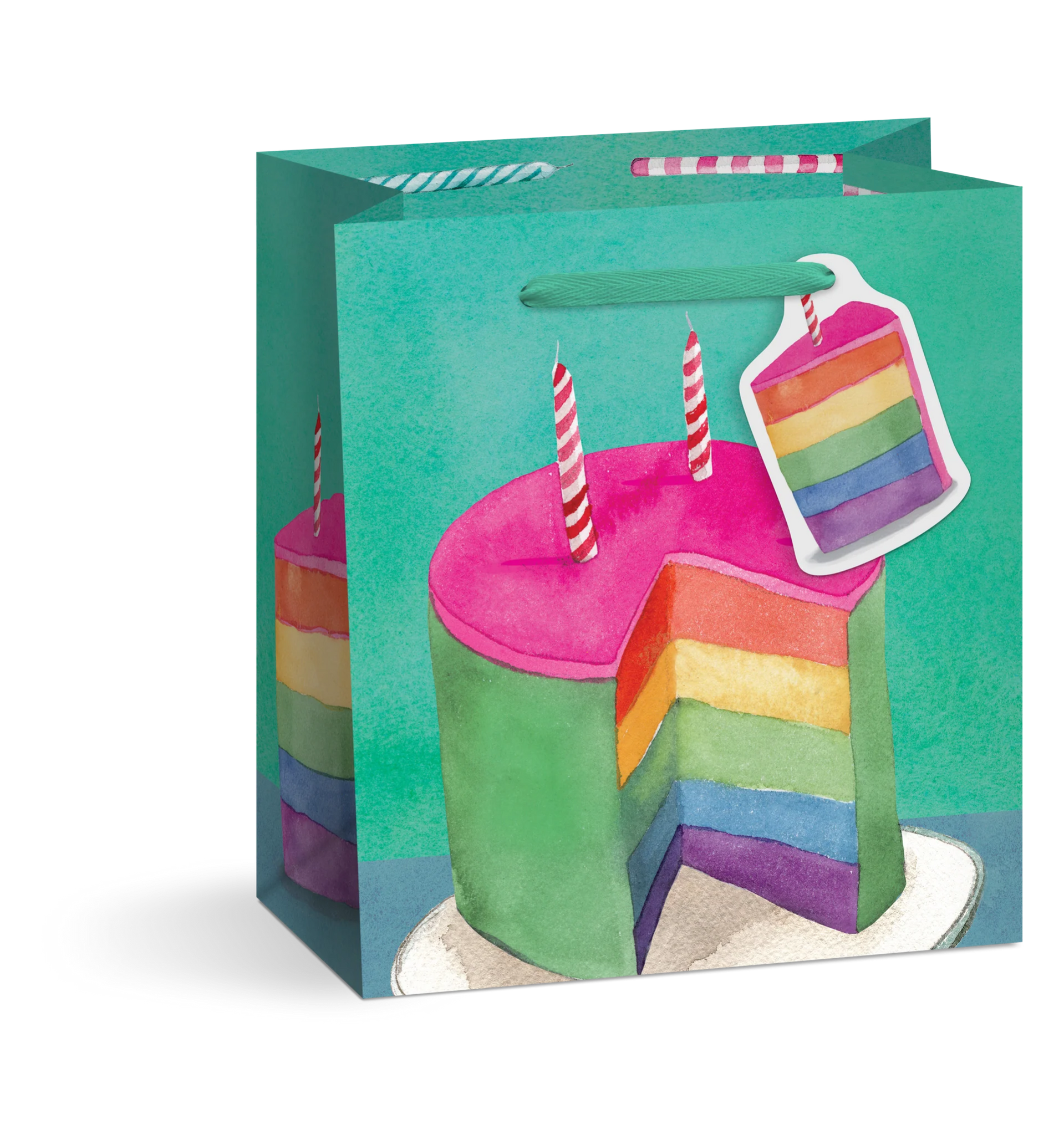 New gift bags are handmade from 100% recycled paper, and are 100% recyclable! Cotton ribbon handles are dyed to match the rich, colorful E. Frances illustrations. Insanely adorable die cut tag included.