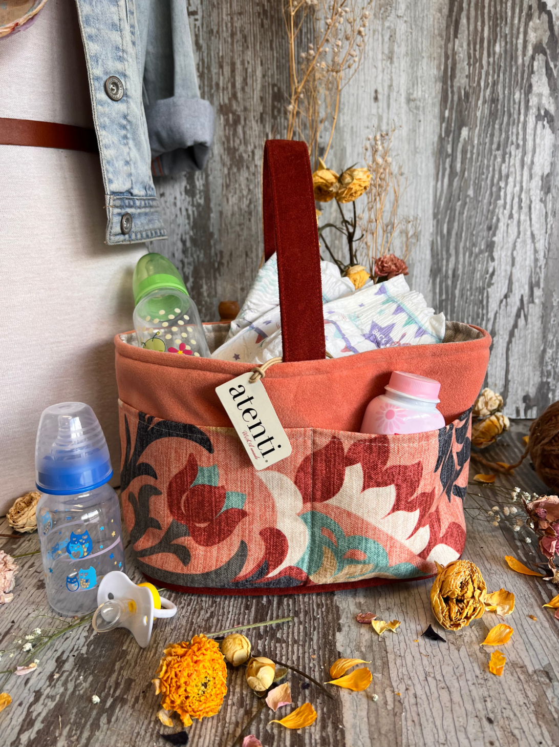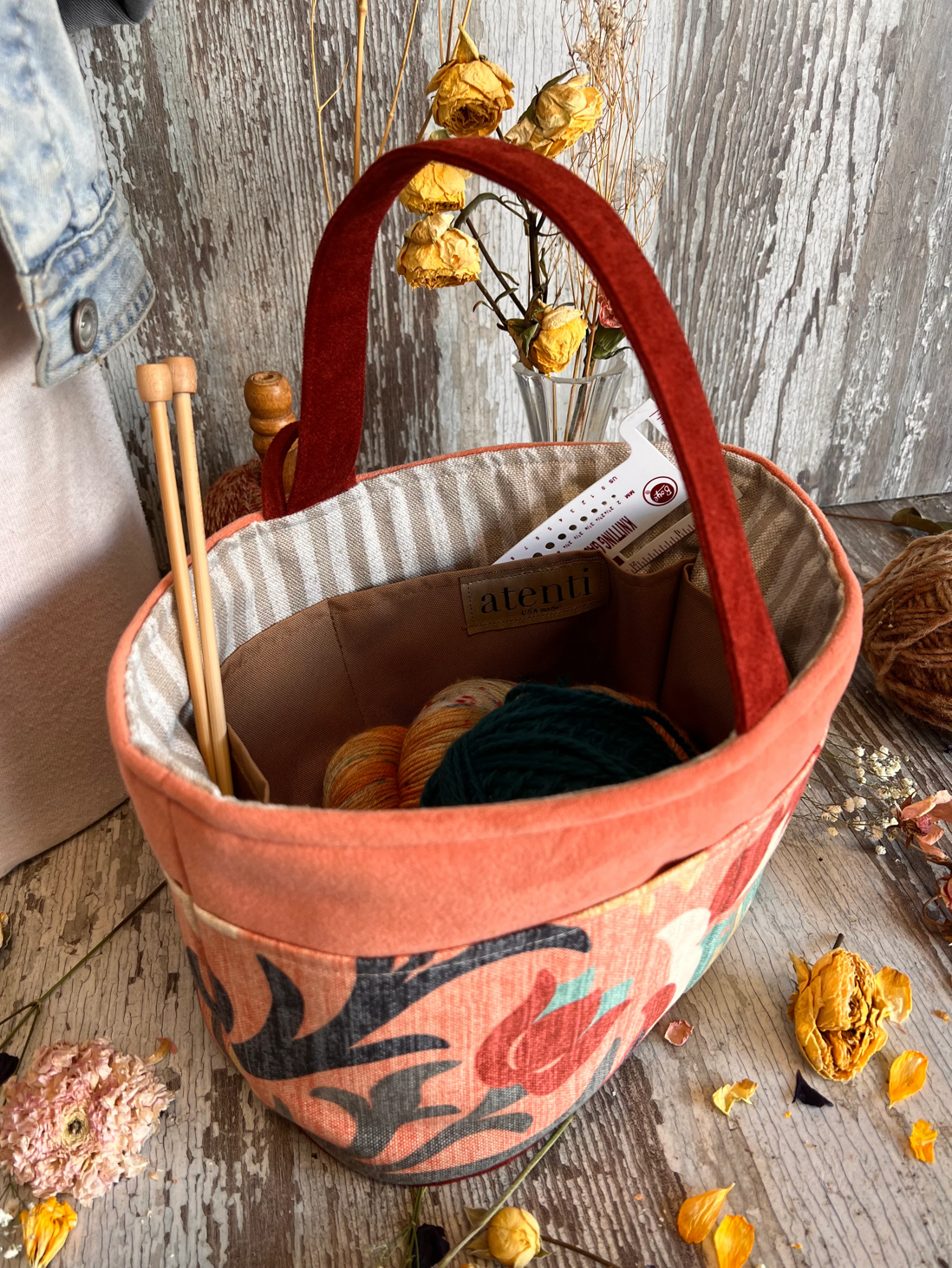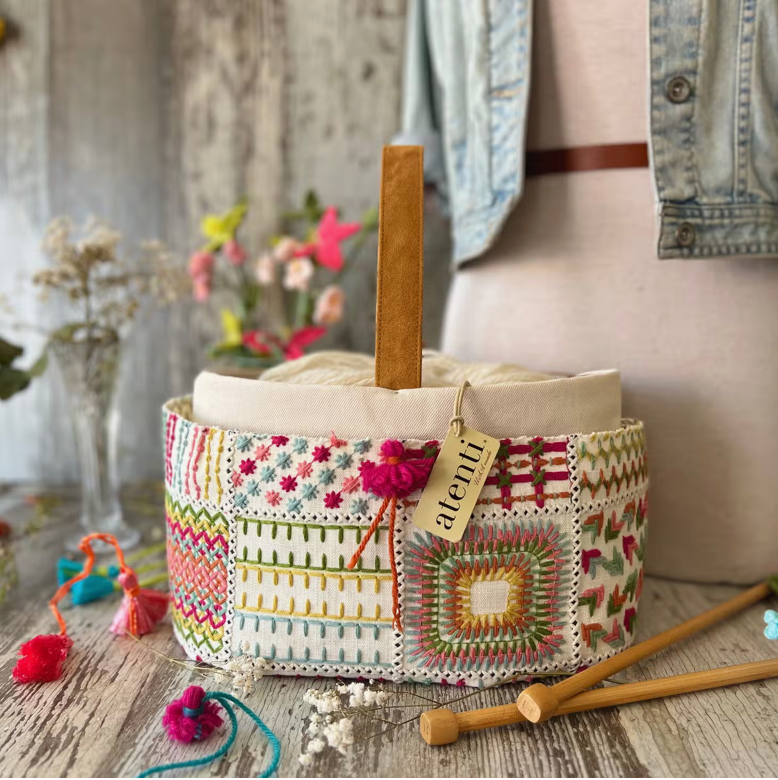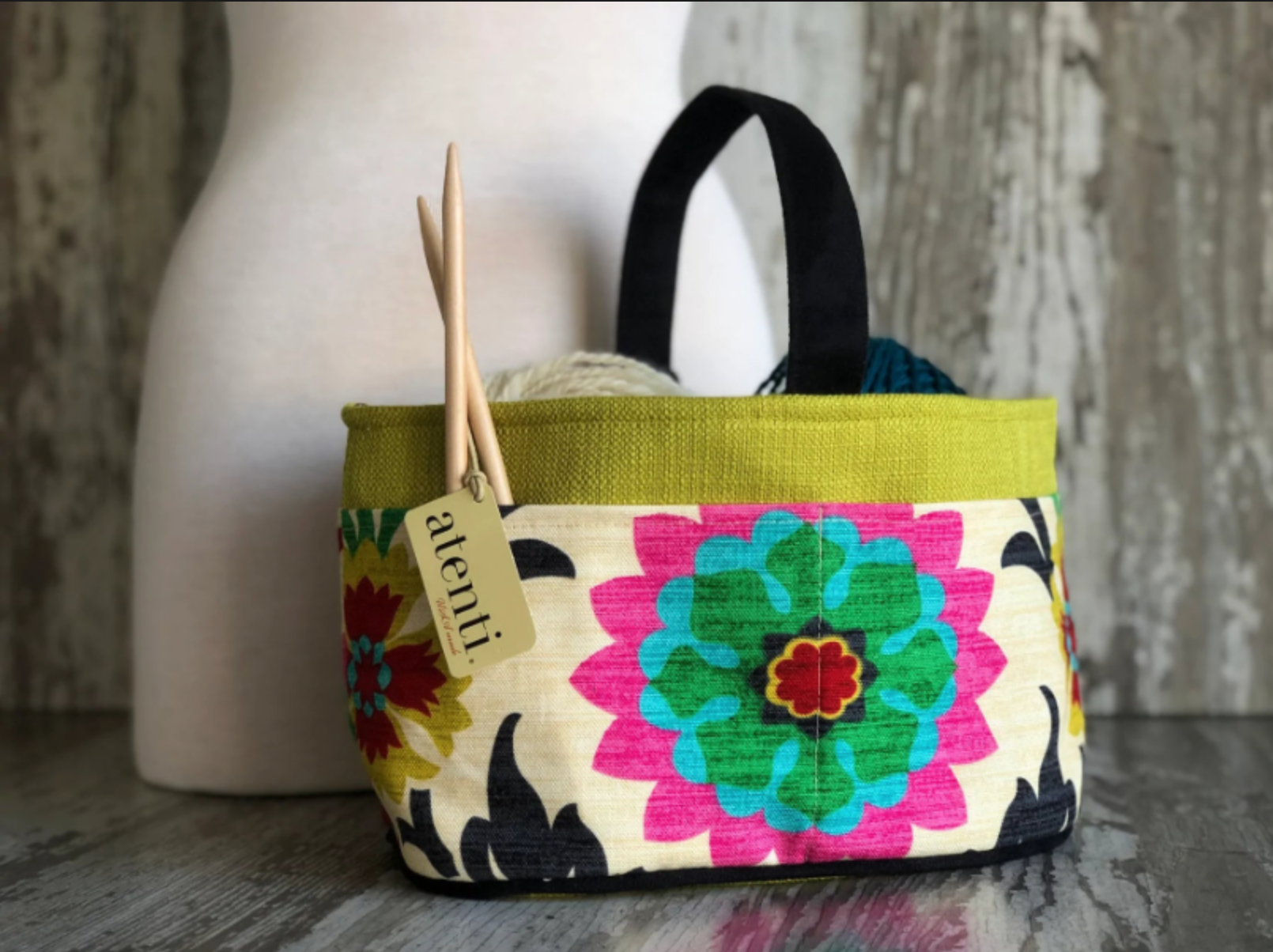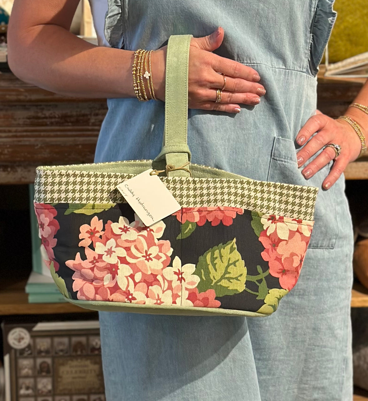 This stand-alone, carry around organizer is perfect to store and keep handy all your tools and notions. It’s fully lined and has four outside and four inside pockets with an ample center well and an ultra suede handle. Combined with a classic green stripe creating a look that's as sophisticated as it is stylish.