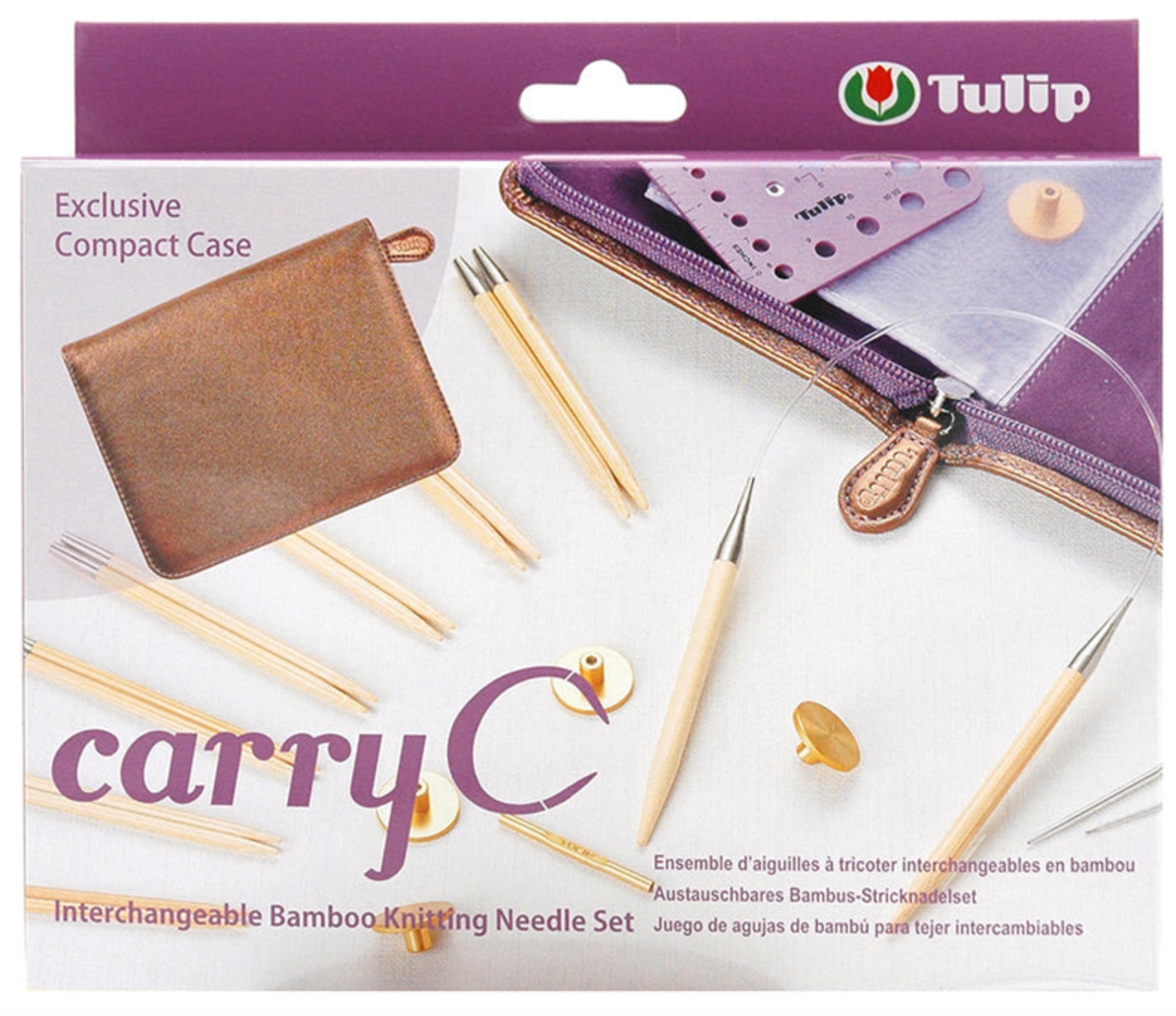 More About Tulip: Tulip has participated in trade shows for handcrafts all over the world. After showcasing their products for many years, they wanted to make a unique interchangeable needle set: the CarryC. To create this amazing set that would go on to earn the favor of knitting fans around the world, they decided that rather than cost, it was more important “to create one product that has everything you need to make knitting easy and enjoyable for everyone, everywhere.” These stunning bamboo knitting needles are loaded with unique features: grooves on the clasp to grip and turn with ease - making tools unnecessary to interchange your needles, a rubber ring so that the connection between the bamboo and the clasp does not loosen, and a pretty, compact carrying case that can be taken anywhere you go.
