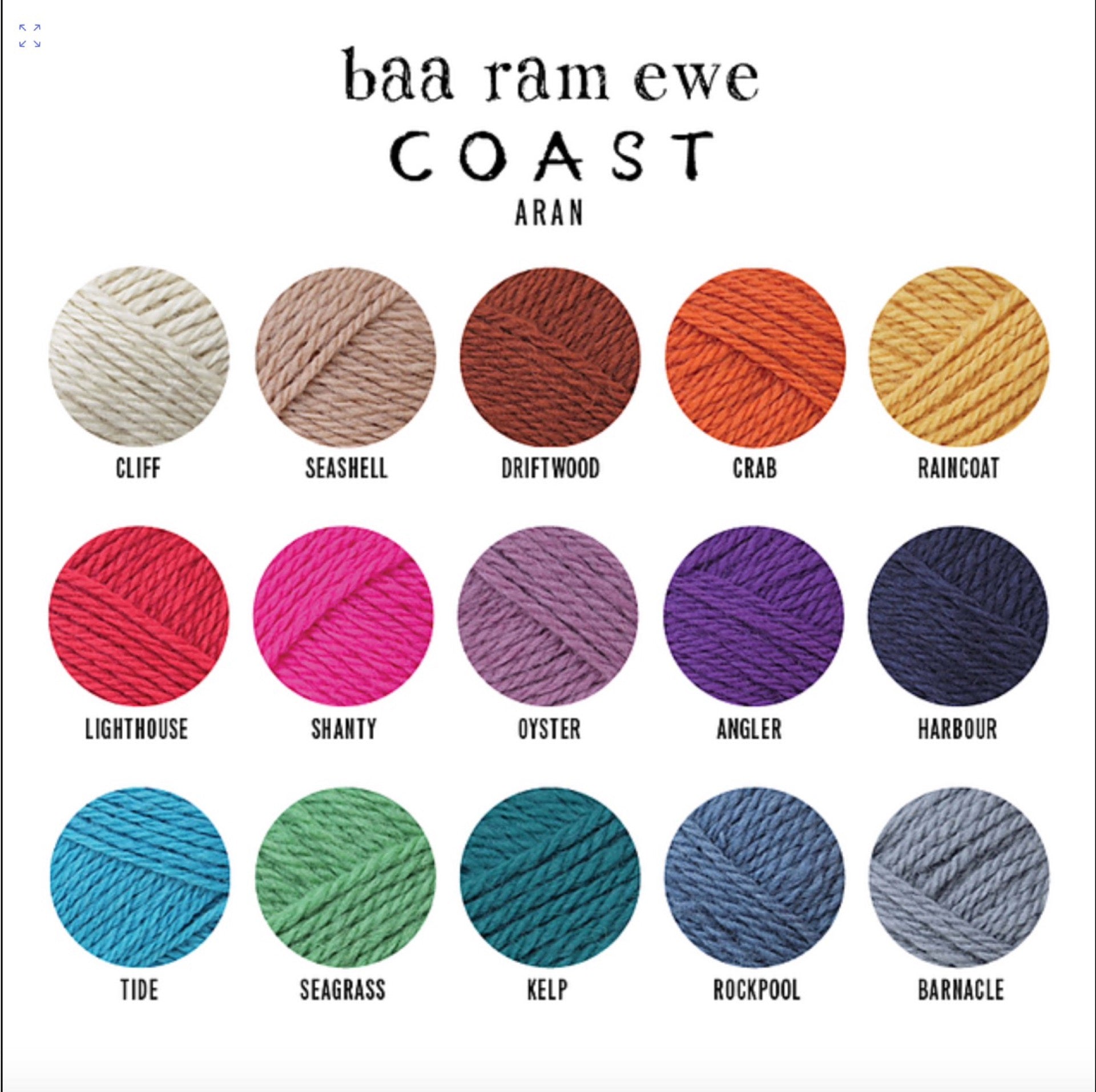 Aran yarn is the original 100% wool yarn traditionally used to knit cable sweaters in coastal regions of Britain and Ireland, with the Irish island of Aran giving it its name. Aran yarn has always been worsted spun and hank dyed, ours follows these traditional methods with an additional organic based softener that’s applied after dying. All of the shades in this range are inspired by fishermen and the coastline.