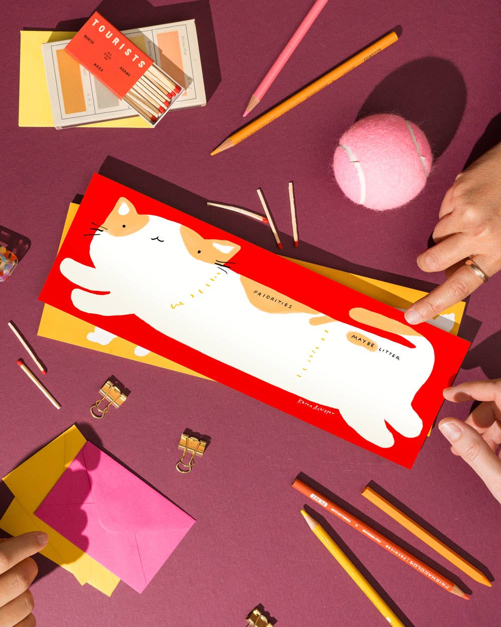 Bright, fun, and full of personality, the Cooper Cat Desk Planner makes planning feel lighthearted and approachable. A chubby white cat stretches across a vivid red background with sections labeled “Priorities” and “Maybe Later,” adding a playful touch to your weekly planning. The bold colors and cheerful design bring a smile before you even start writing.