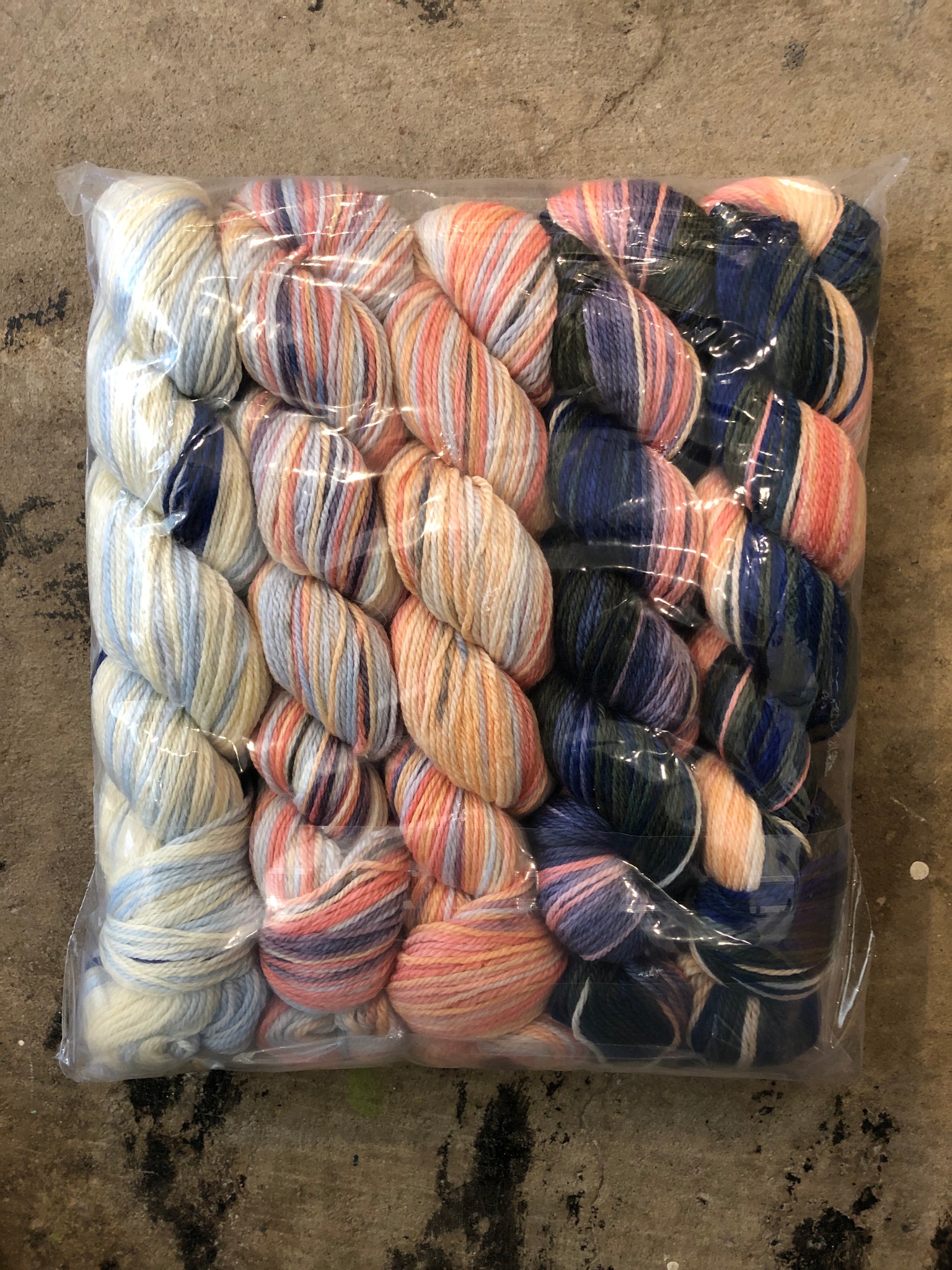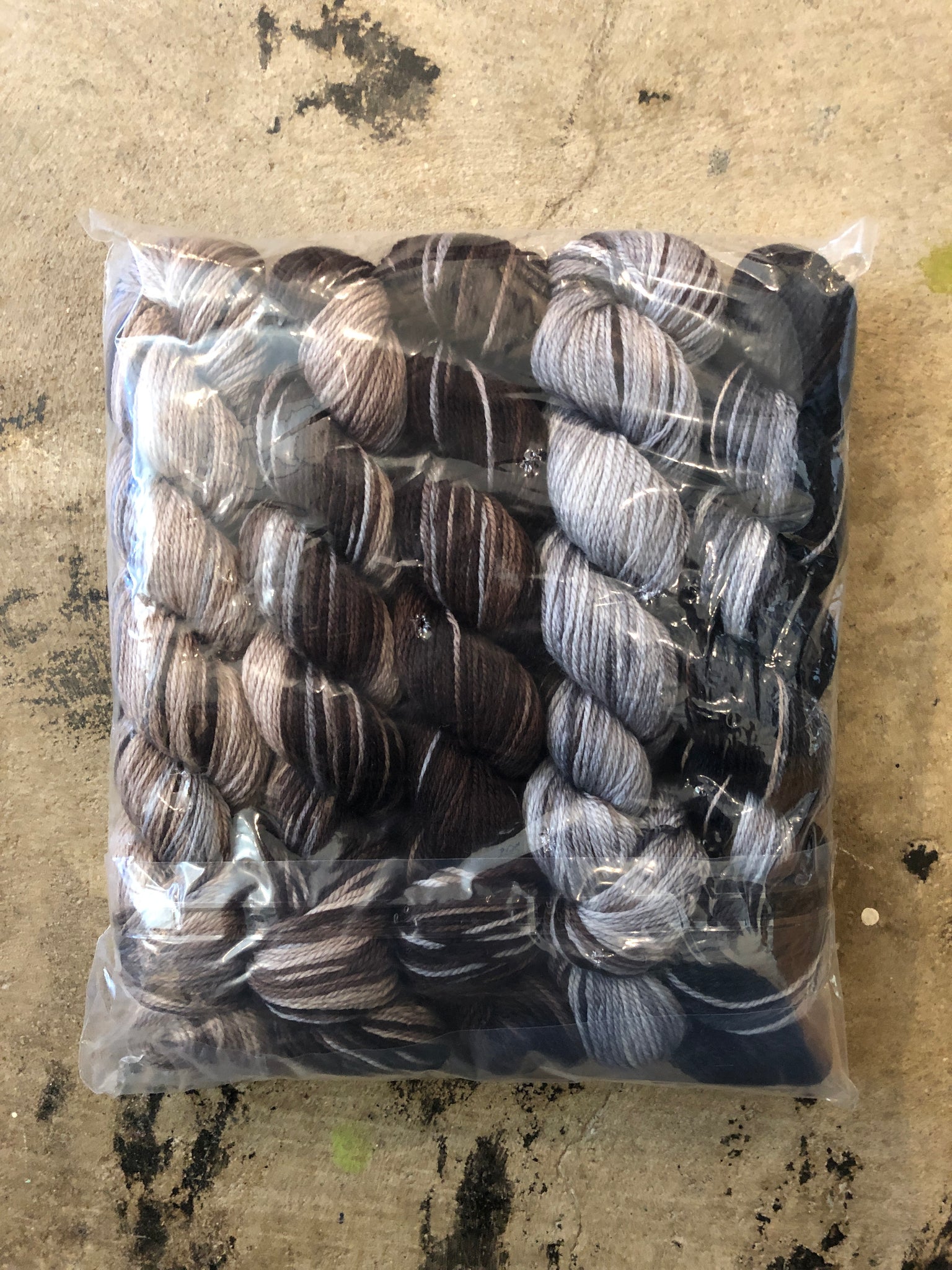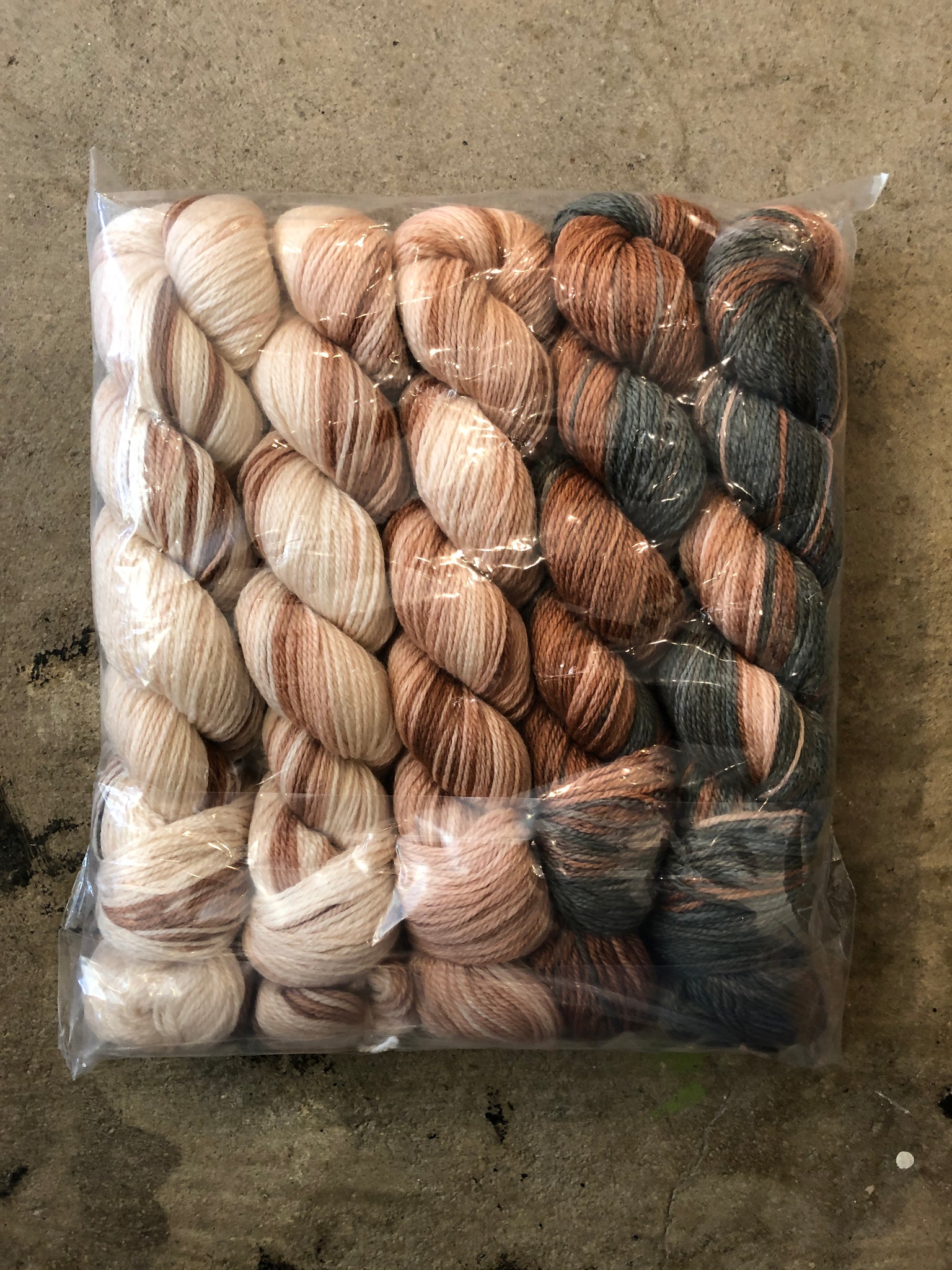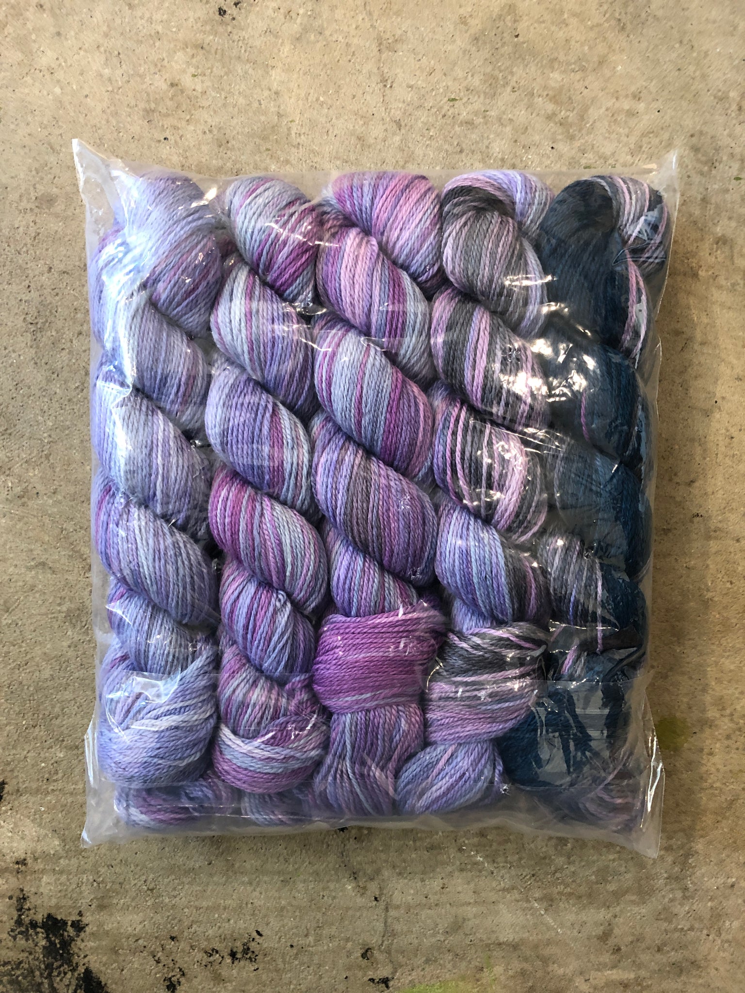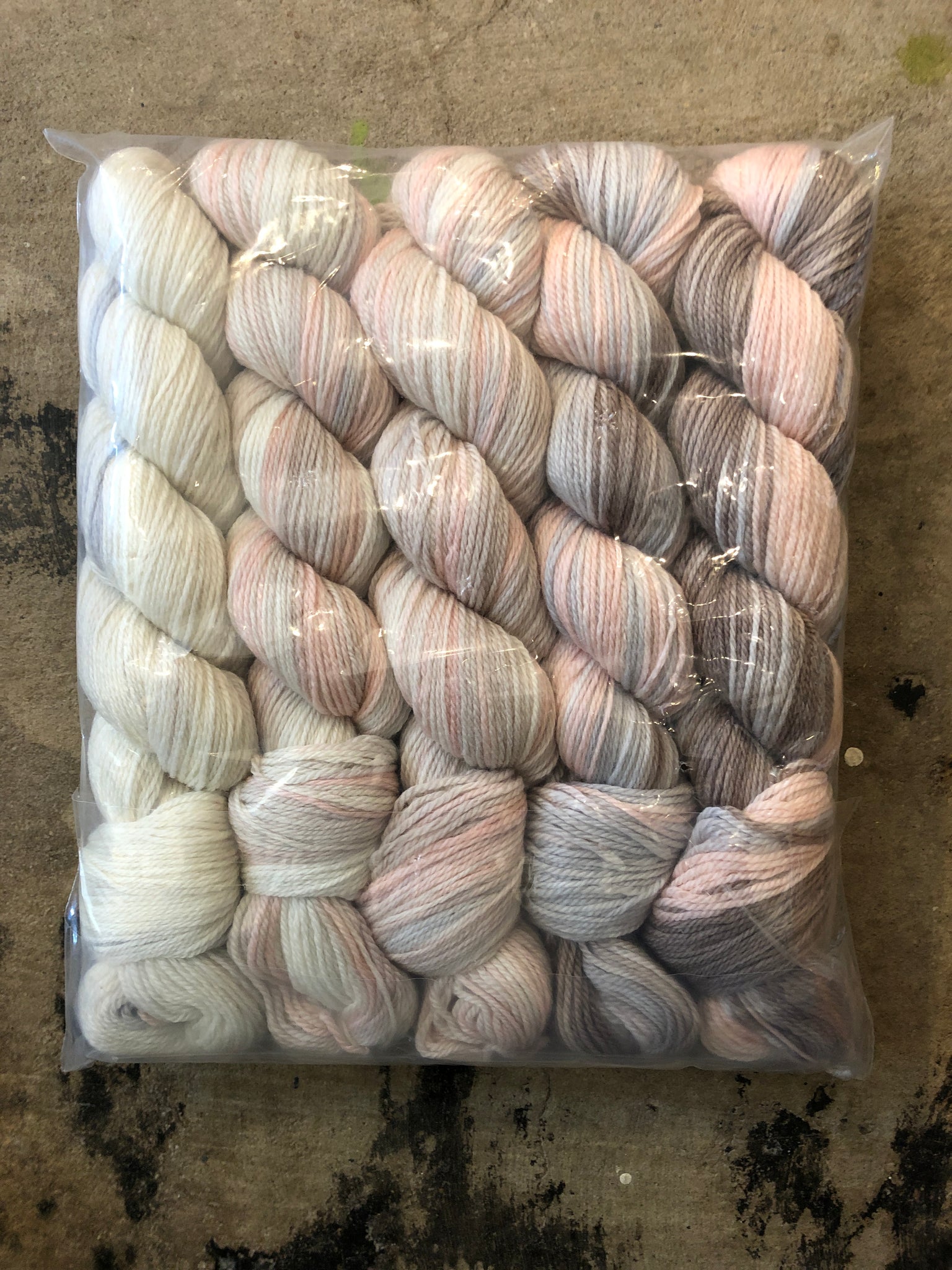 Each Merino Cloud Fade Kit includes 5 half skeins of Merino Cloud, at 218yds/200m per 50g skein, total 1090yds/1000m.